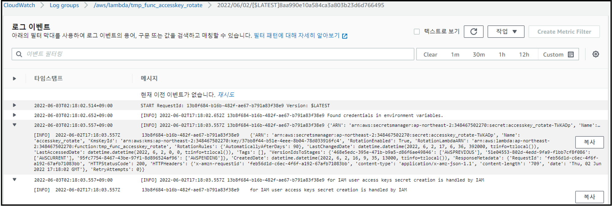 - CloudWatch Log groups에서 Access Key 변경 확인