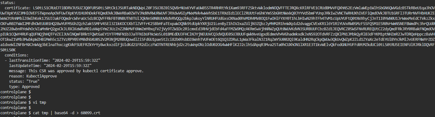 k get csr [csr_name] -o yaml # certificate 부분을 별도 파일에 저장