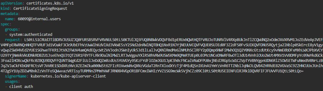 request: LS0tLS1CRUdJTiBD... # base64로 인코딩한 CSR 값