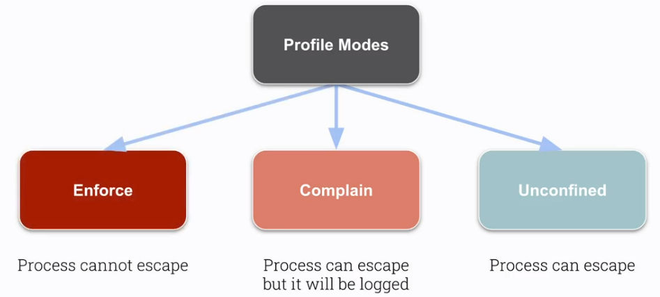 - AppArmor는 Profile을 정의를 통해 시스템 콜을 운영자가 원하는대로 허용/거부할 수 있음