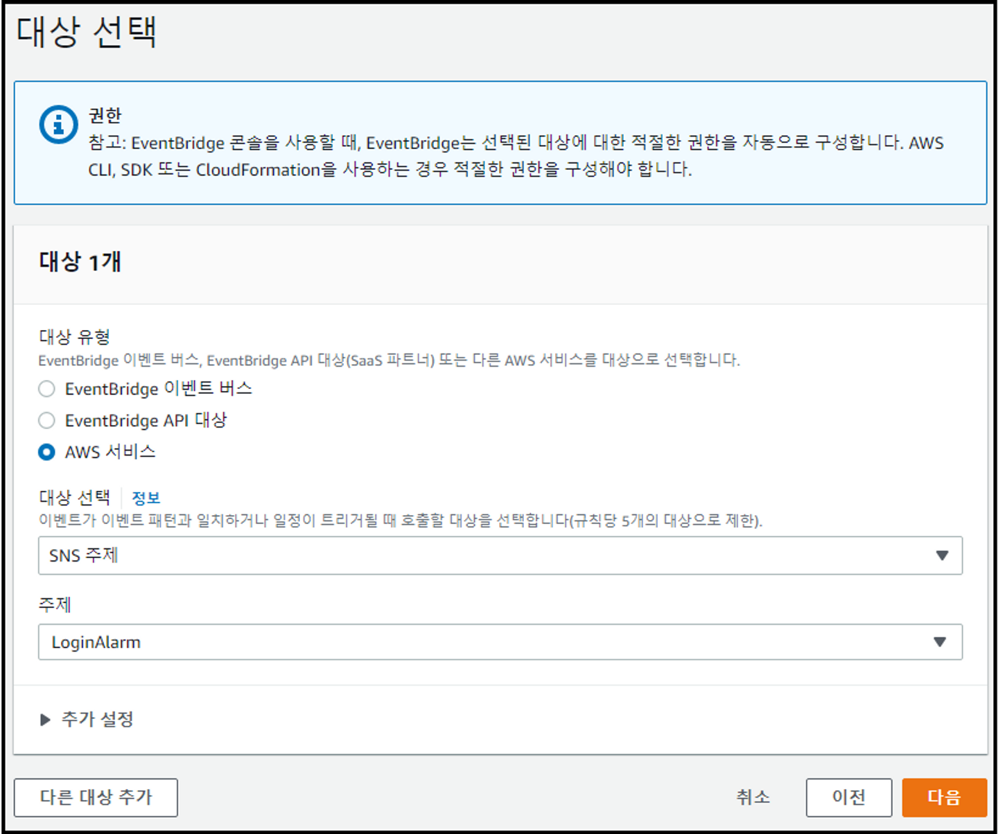 - [알림] 다양한 방법이 있을 수 있으나 본 항목에서는 SNS와 EventBridge를 활용한 방법을 안내