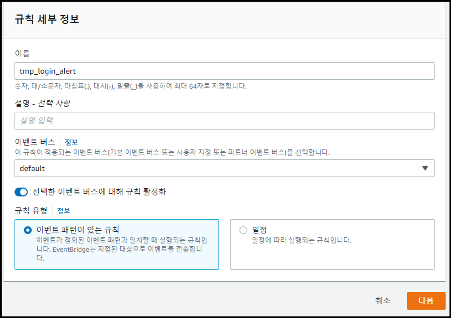 - 규칙 세부 정보 설정