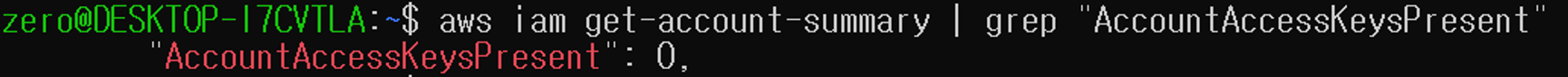 aws iam get-account-summary | grep "AccountAccessKeysPresent"