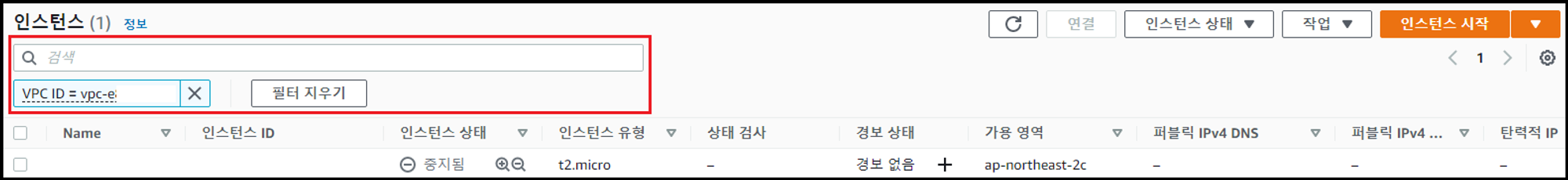- EC2 서비스에서 [인스턴스] 클릭