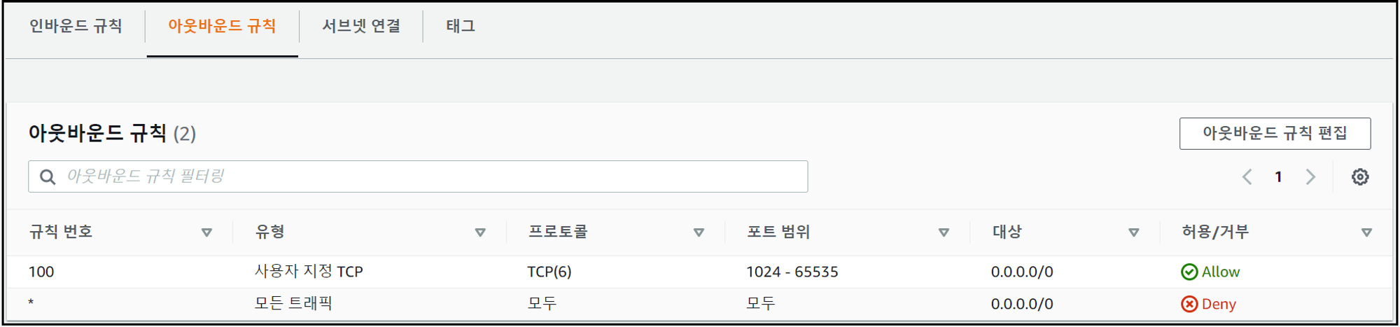 - 인바운드 규칙과 마찬가지로 아웃바운드 규칙 설정