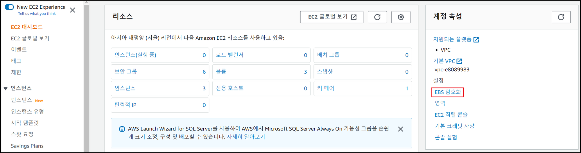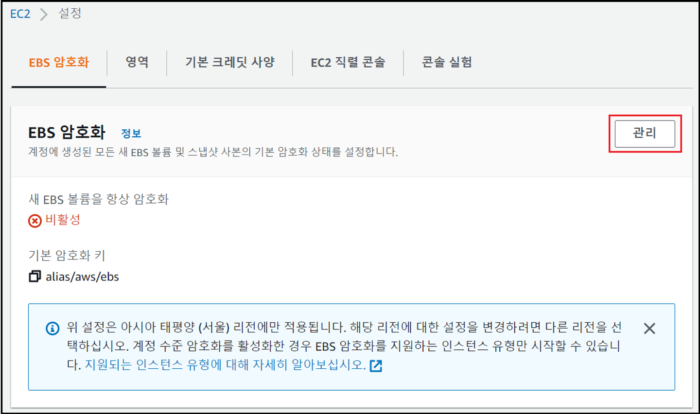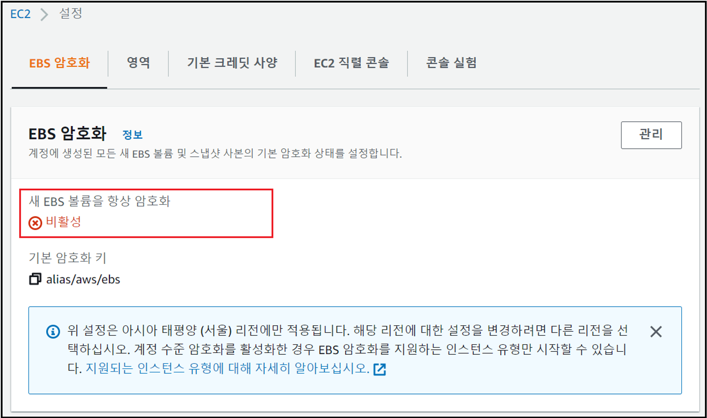 - EBS 암호화 디폴트 설정 여부 확인