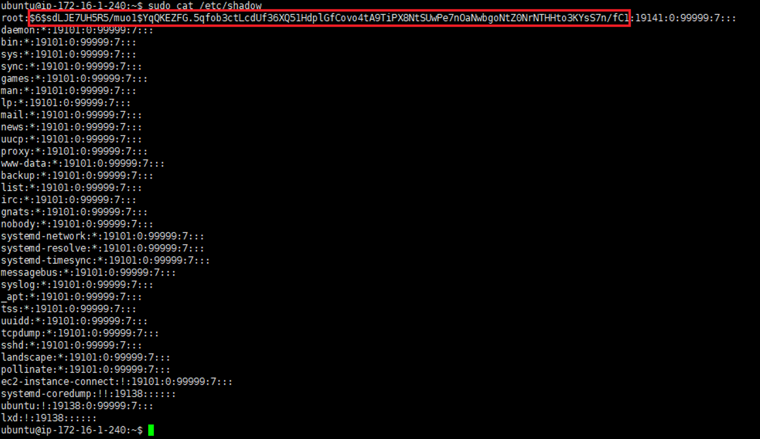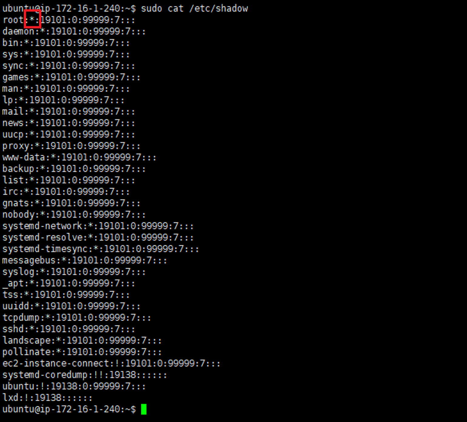 - root 계정의 두 번째 컬럼에서 패스워드 설정 여부 확인