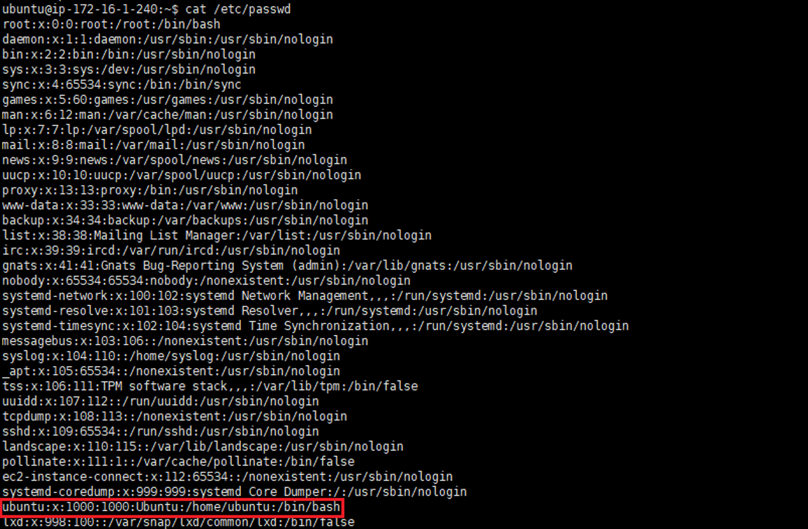 cat /etc/passwd
