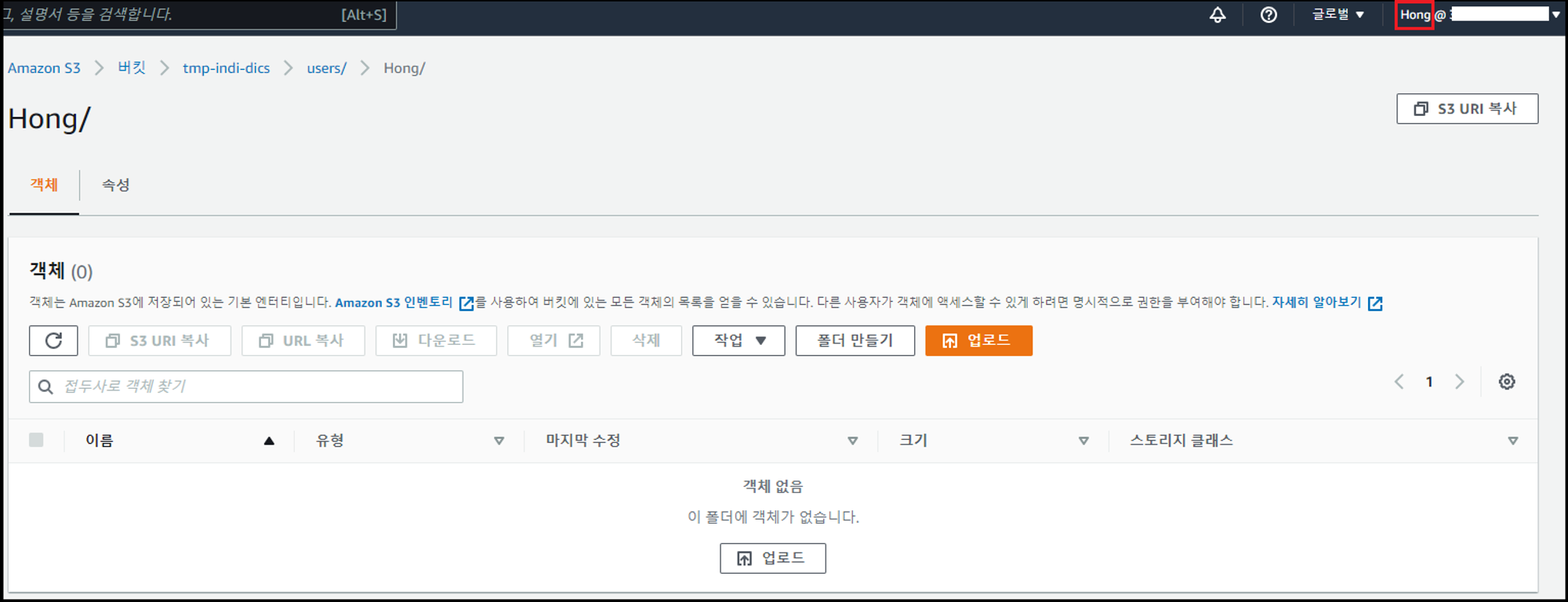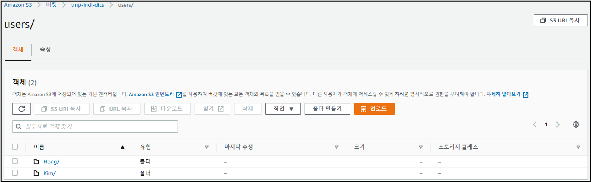 - 버킷 목록에서 담당자별 디렉터리 생성 여부 확인