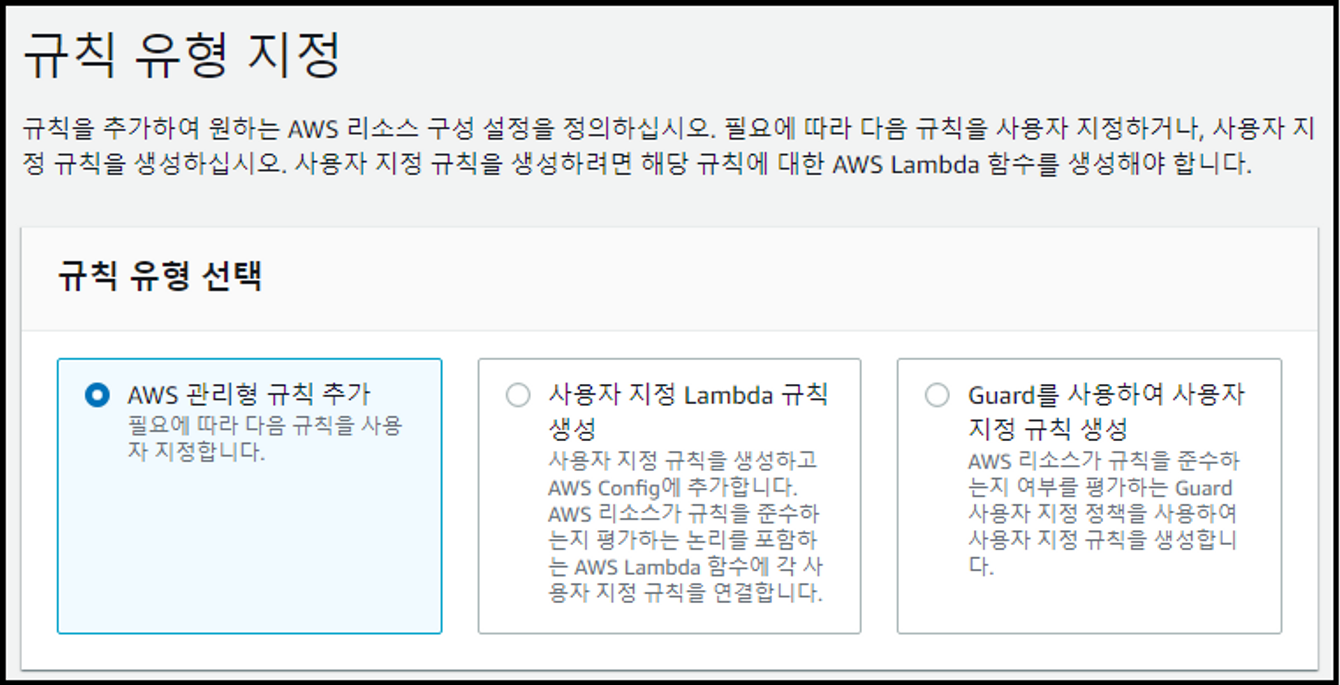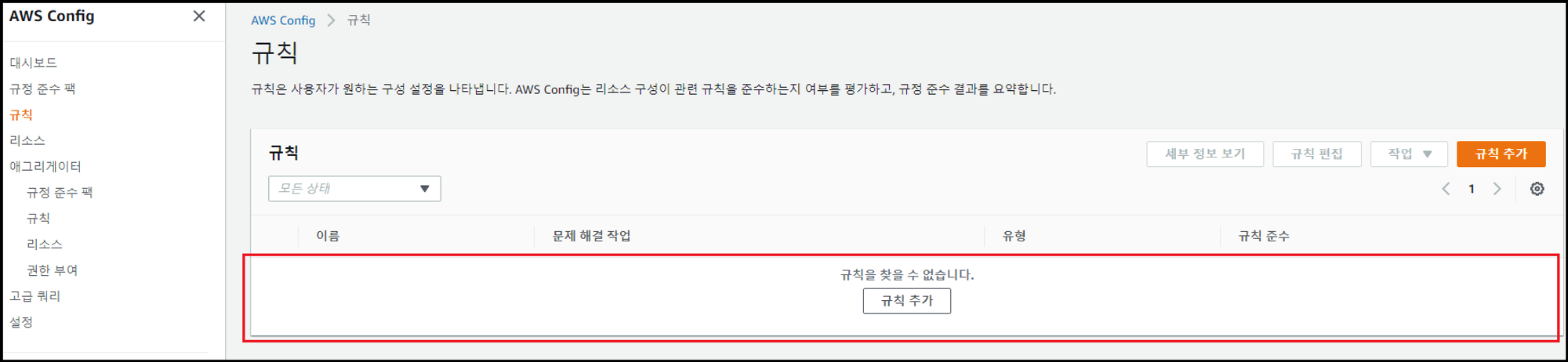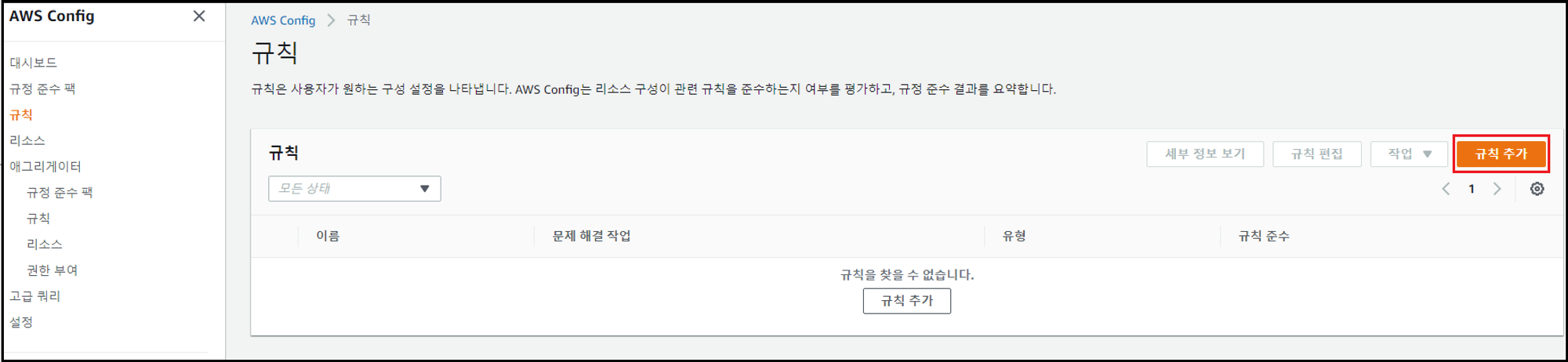 - 관리 콘솔에서 [Config] 검색 → [규칙] 클릭