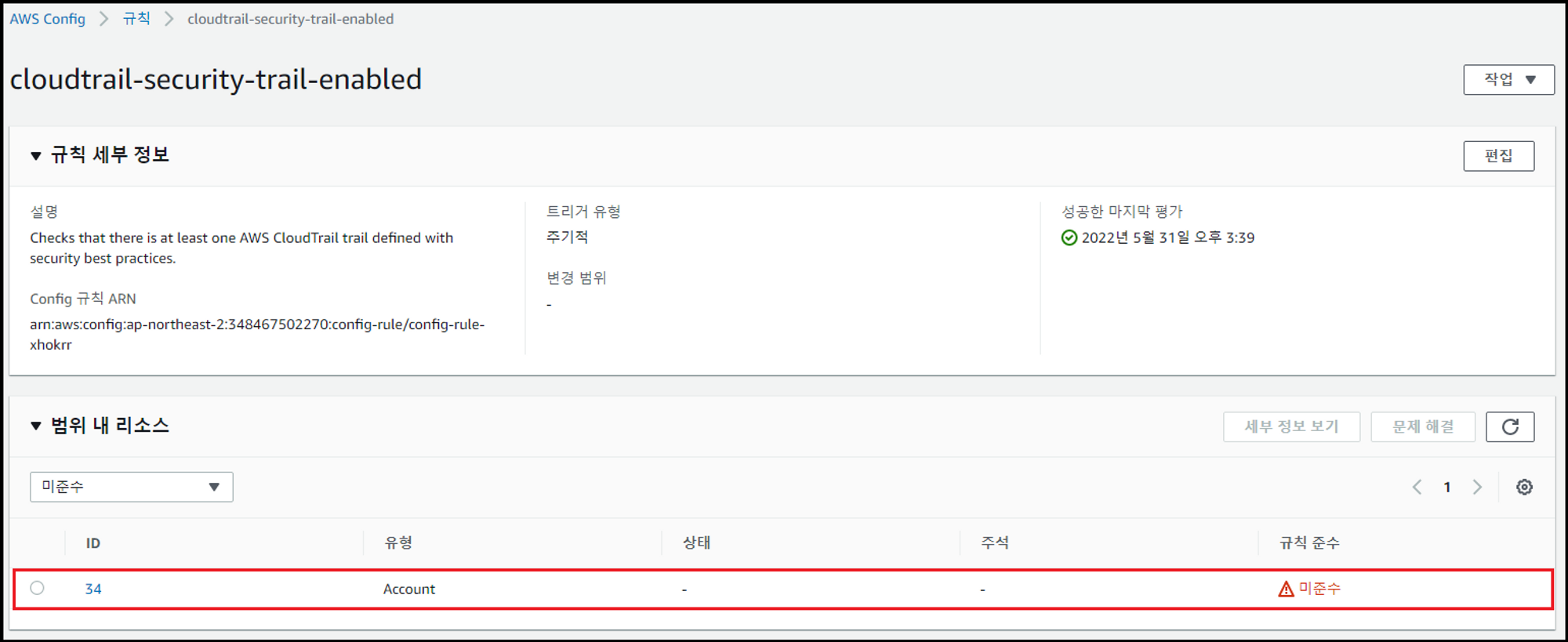 - 내부 보안 정책에 따라 AWS 리소스의 보안 기준을 설정하고, Config를 활용하여 보안 기준 준수 여부 관리 필요
