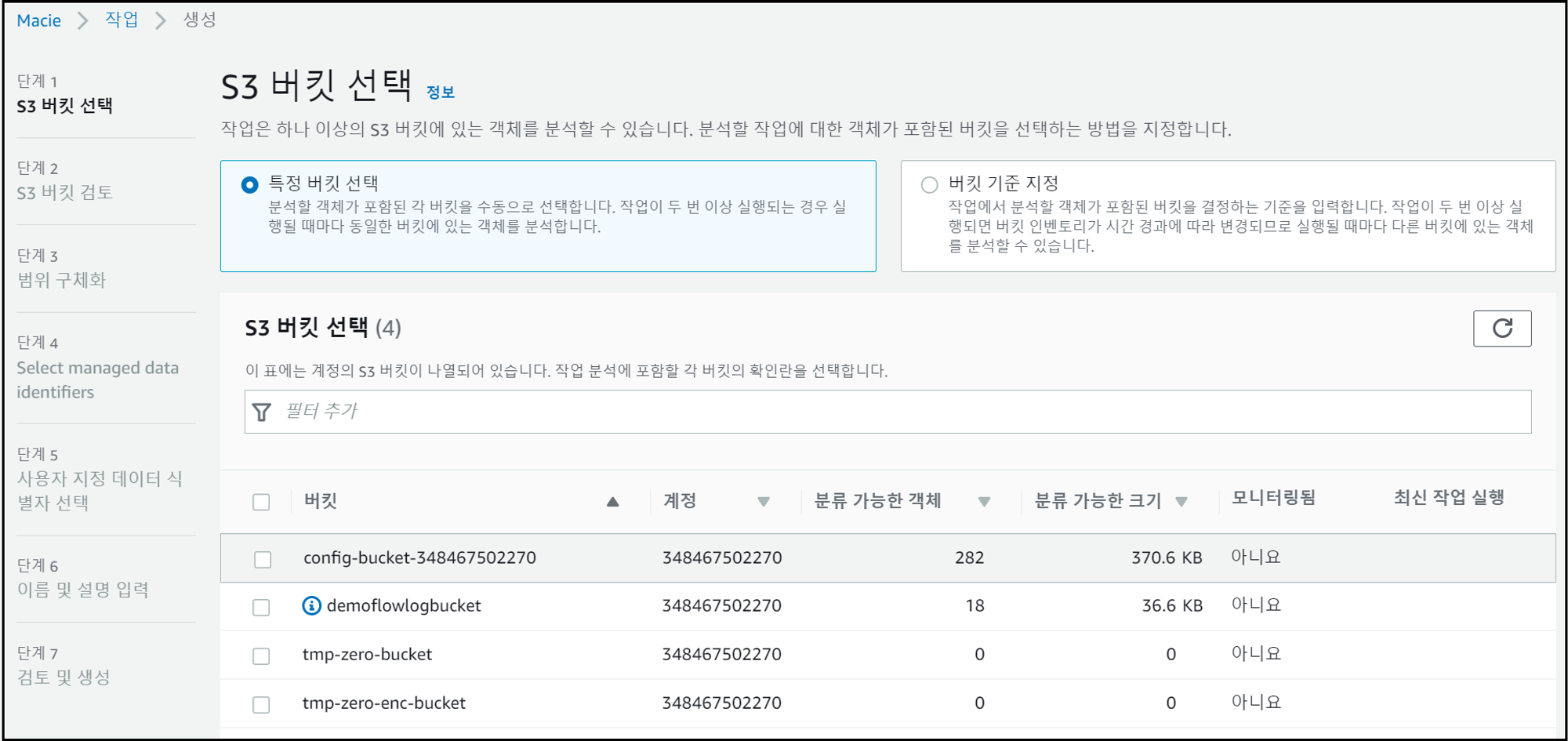 - [주의] Amazon Macie 서비스는 스캔되는 버킷의 개수와 데이터 용량에 따라 요금이 발생하므로, 사용 전 스캔 대상 및 범위에 대해 면밀히 검토 필요