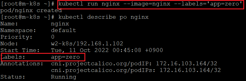 - app=zero 레이블을 가진 파드 생성