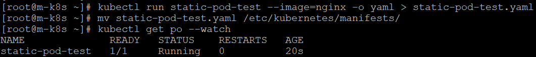 - /var/lib/kubelet/config.yaml에서 staticPodPath에 지정된 디렉터리에서 정적 파드 생성 가능