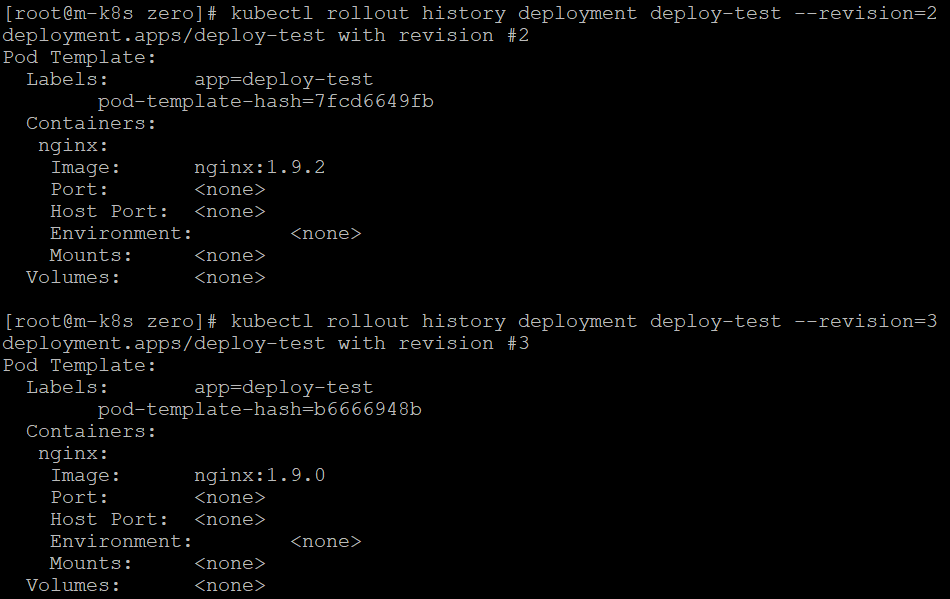 ex) kubectl rollout history deployment deploy-test --revision=3