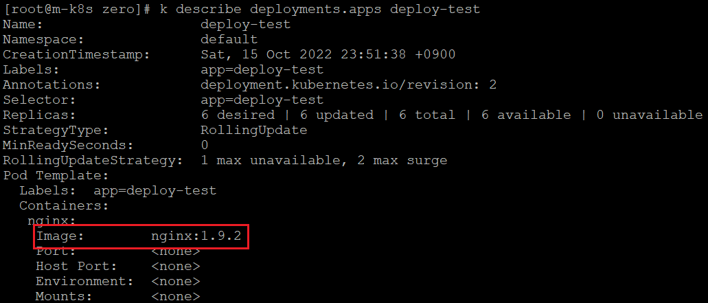 ex) kubectl set image deployment/deploy-test nginx=nginx:1.9.2