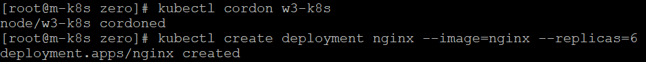 - w1-k8s 노드에 드레인을 적용하고 디플로이먼트 배포 시 다른 노드에만 파드가 배포되는 것을 확인