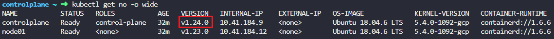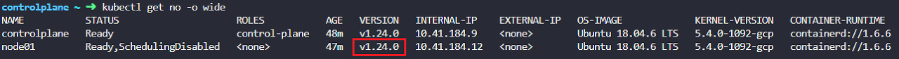 - 클러스터 업그레이드 적용 `sudo kubeadm upgrade apply v1.24.0`