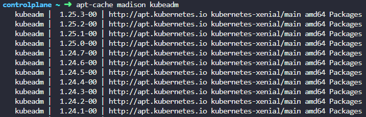 - 업그레이드 가능한 kubeadm 버전 확인 `apt-cache madison kubeadm`