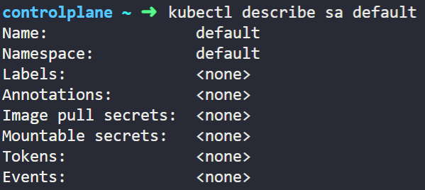 - 세부 정보 확인 : kubectl describe sa [서비스어카운트_이름]