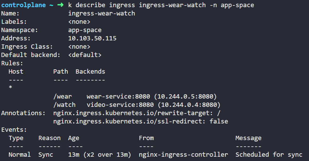 - Ingress 리소스 설정 확인 : kubectl describe ingress [인그레스_이름]