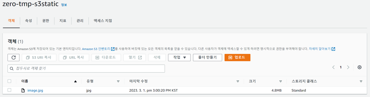 - 생성한 버킷에 파일 업로드