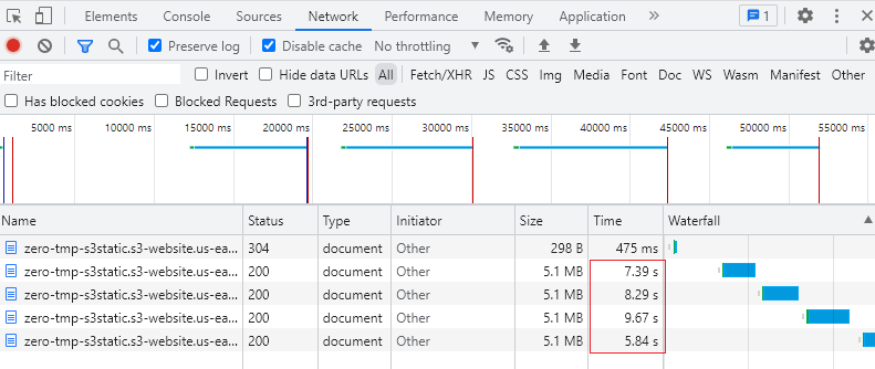 - S3로만 서빙할 경우 5초 ~ 9초 소요