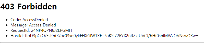 - 버킷 엔드포인트로 접근 시 403 확인