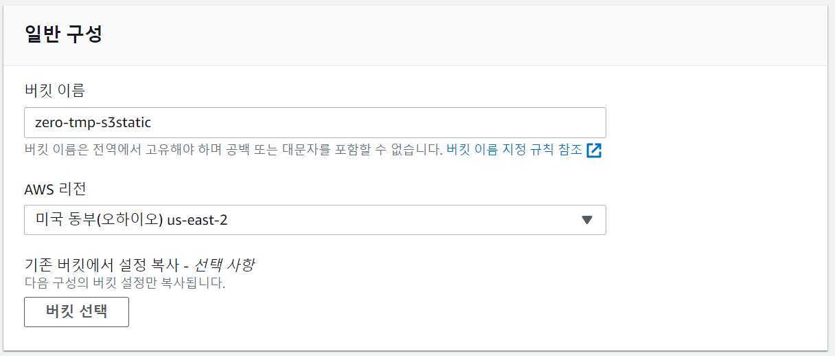 - S3 > 버킷 만들기 > 버킷 이름과 리전 설정 > 버킷 만들기(속도 테스트를 위해 대한민국과 지리적으로 먼 임의의 해외 리전 선택)