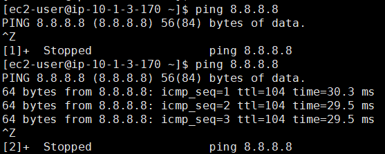 - NAT GW 구성 후 Private EC2에서 인터넷 통신 테스트