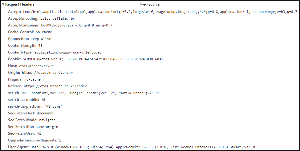 'Referer' : 'https://ctas.krcert.or.kr/index',