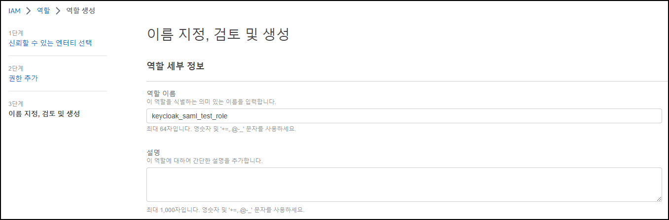 SAML을 통해 AWS 리소스에 허용해주고자 하는 역할을 생성합니다.