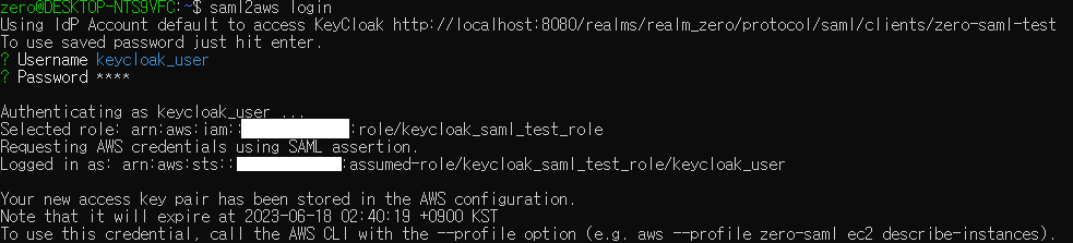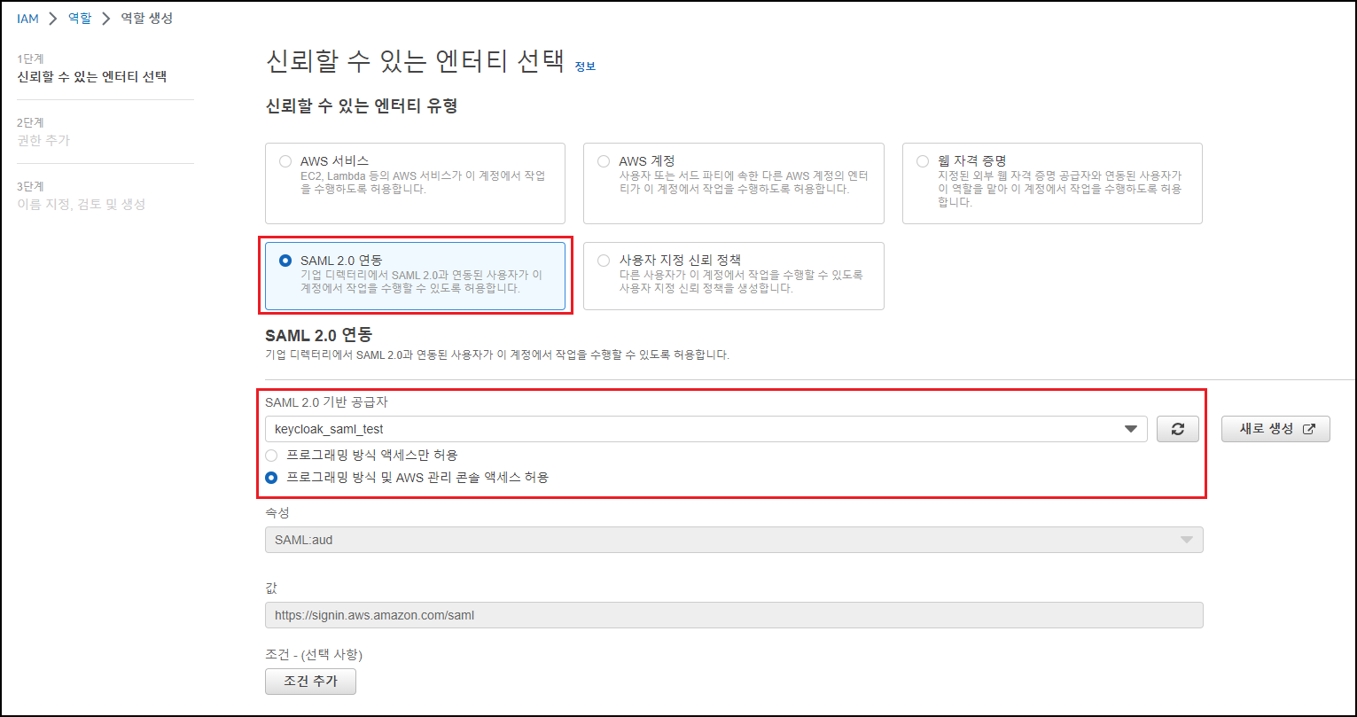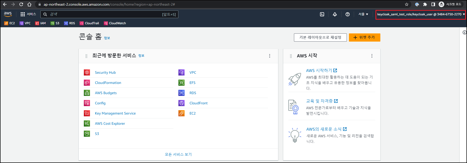 AWS와 Keycloak간에 SAML을 구성하여 별도의 AWS 어카운트 없이 IAM Role 기반으로 AWS 리소스에 접근할 수 있는 환경을 구성할 수 있습니다.
