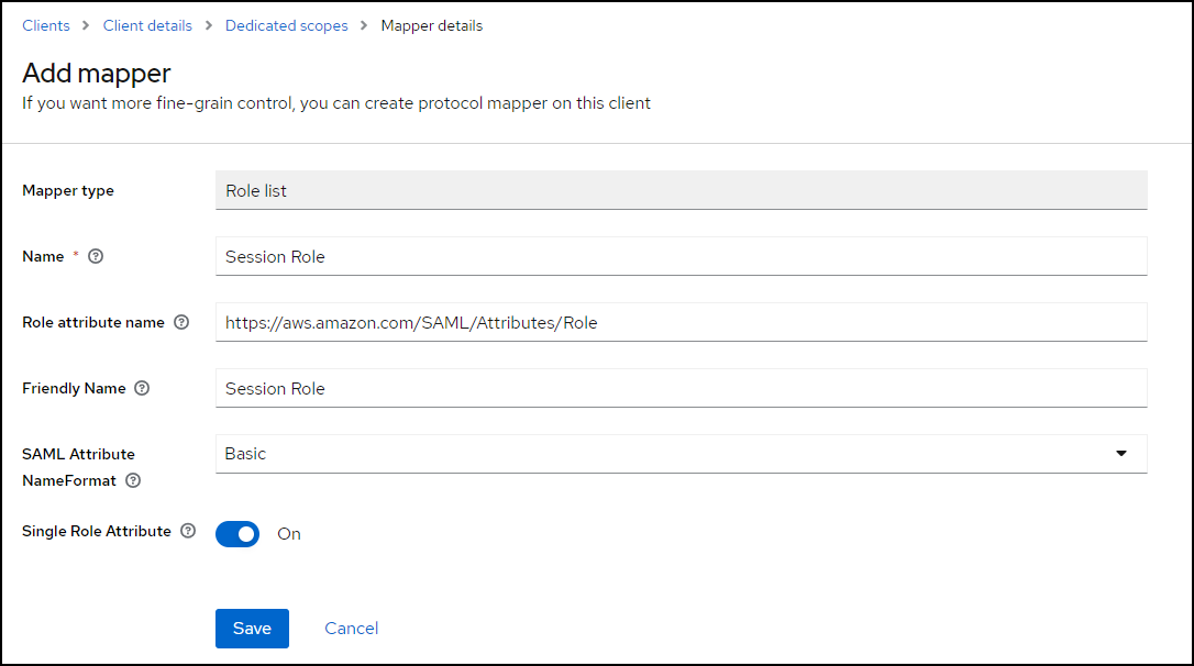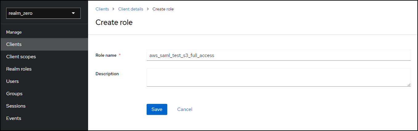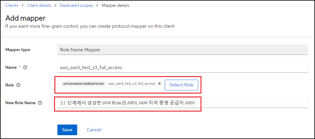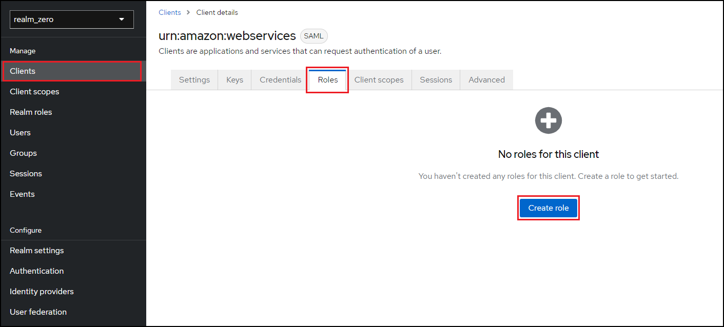 AWS IAM Role과 맵핑할 clients의 Role을 생성합니다.