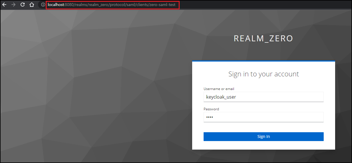 Clients 메뉴의 Target IDP initiated SSO URL로 접속합니다. 유저 정보를 입력하면 Keycloak 페더레이션 사용자로 로그인되는 것을 확인할 수 있습니다.