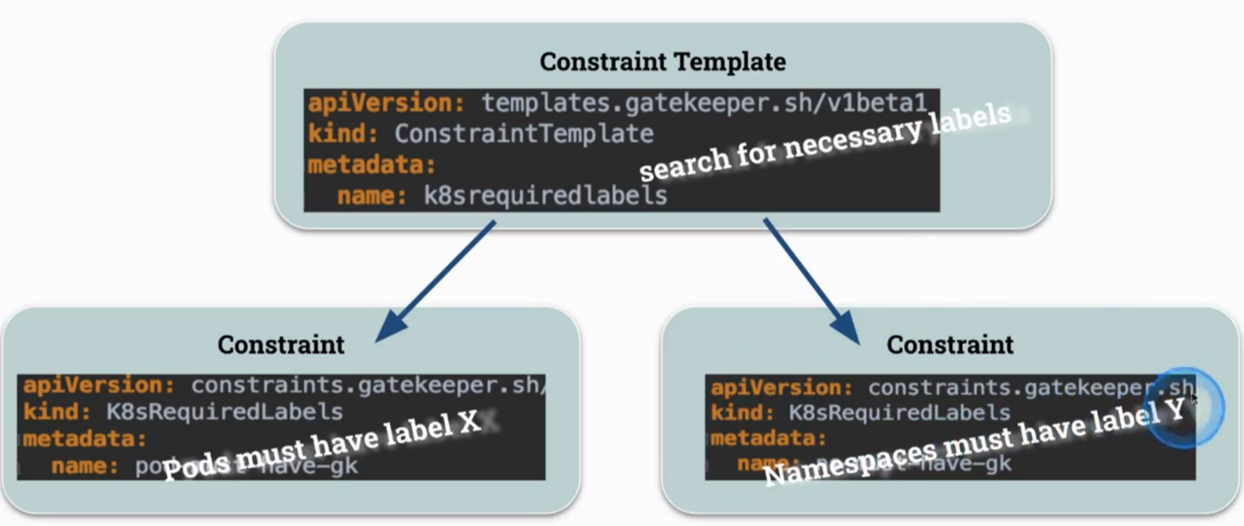 - OPA 정책을 K8s가 해석할 수 있도록 CRDs로 정의(ConstraintTemplate)하고, 실제 정책 실행 대상 및 조건은 Constraint에 정의