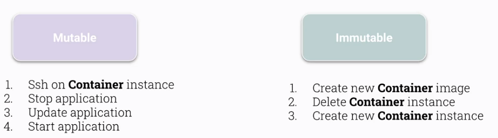 - Immutability of Containers의 목적은 궁극적으로 관리자가 모든 컨테이너의 상태를 파악하고 핸들링하기 위함