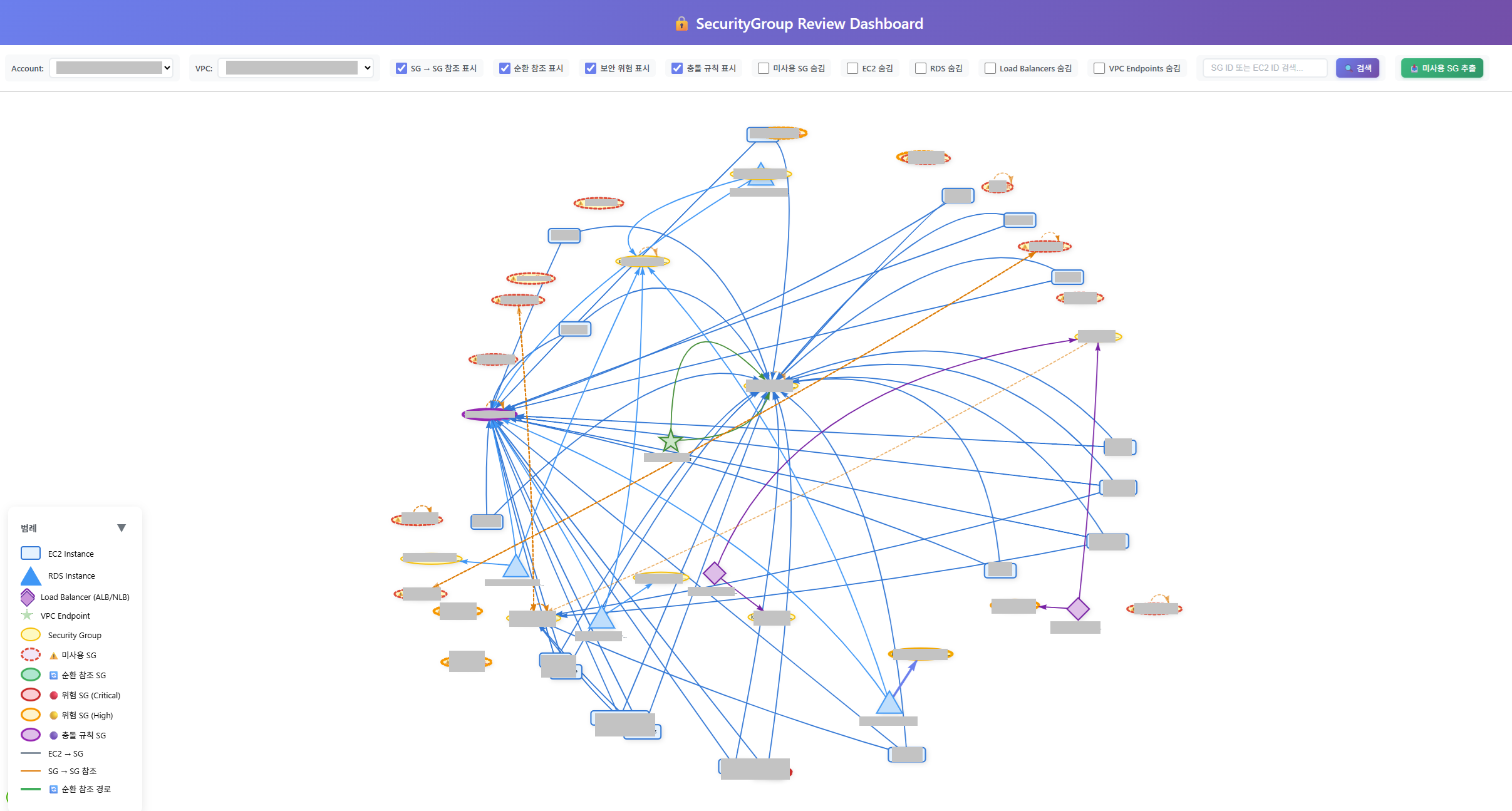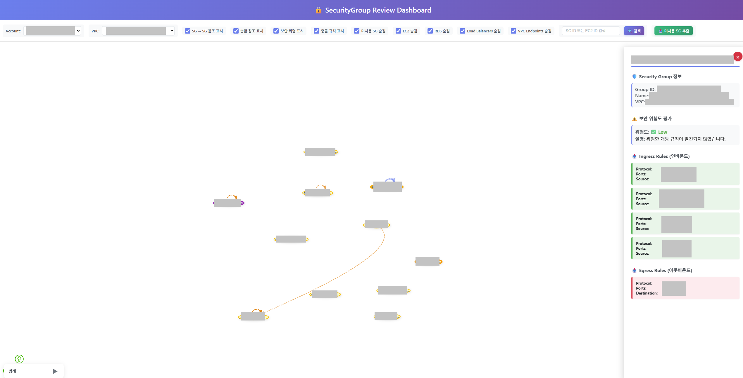 그동안 SG의 복잡성 때문에 적정성 검토를 충분히 하지 못한 점이 늘 마음에 걸렸습니다. 특히 1인 보안 담당자로서 모든 AWS 계정의 Security Group을 수동으로 검토하는 것은 큰 부담이었습니다. SG 대시보드를 통해 이제는 검토가 필요한 SG를 명확히 식별할 수 있고, SG 간 관계를 시각적으로 한눈에 파악할 수 있게 되어 업무 부담이 크게 줄었습니다.